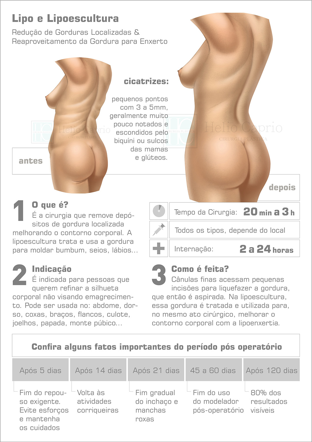 Terminado o processo de recuperação, o paciente nota uma silhueta corporal mais harmônica. Os resultados obtidos só serão duradouros, se o paciente adotar uma alimentação equilibrada e realizar atividades físicas regularmente.